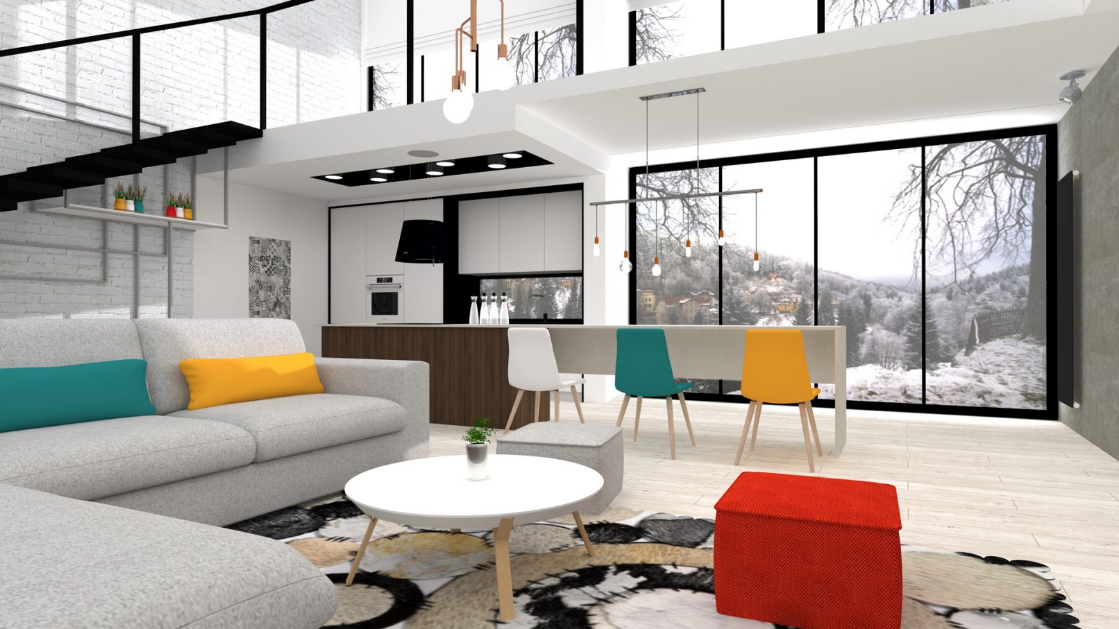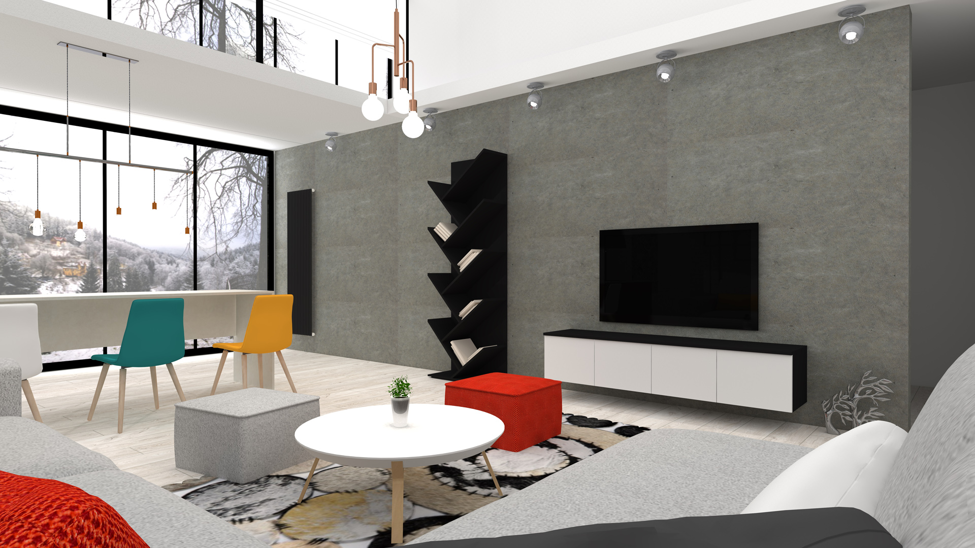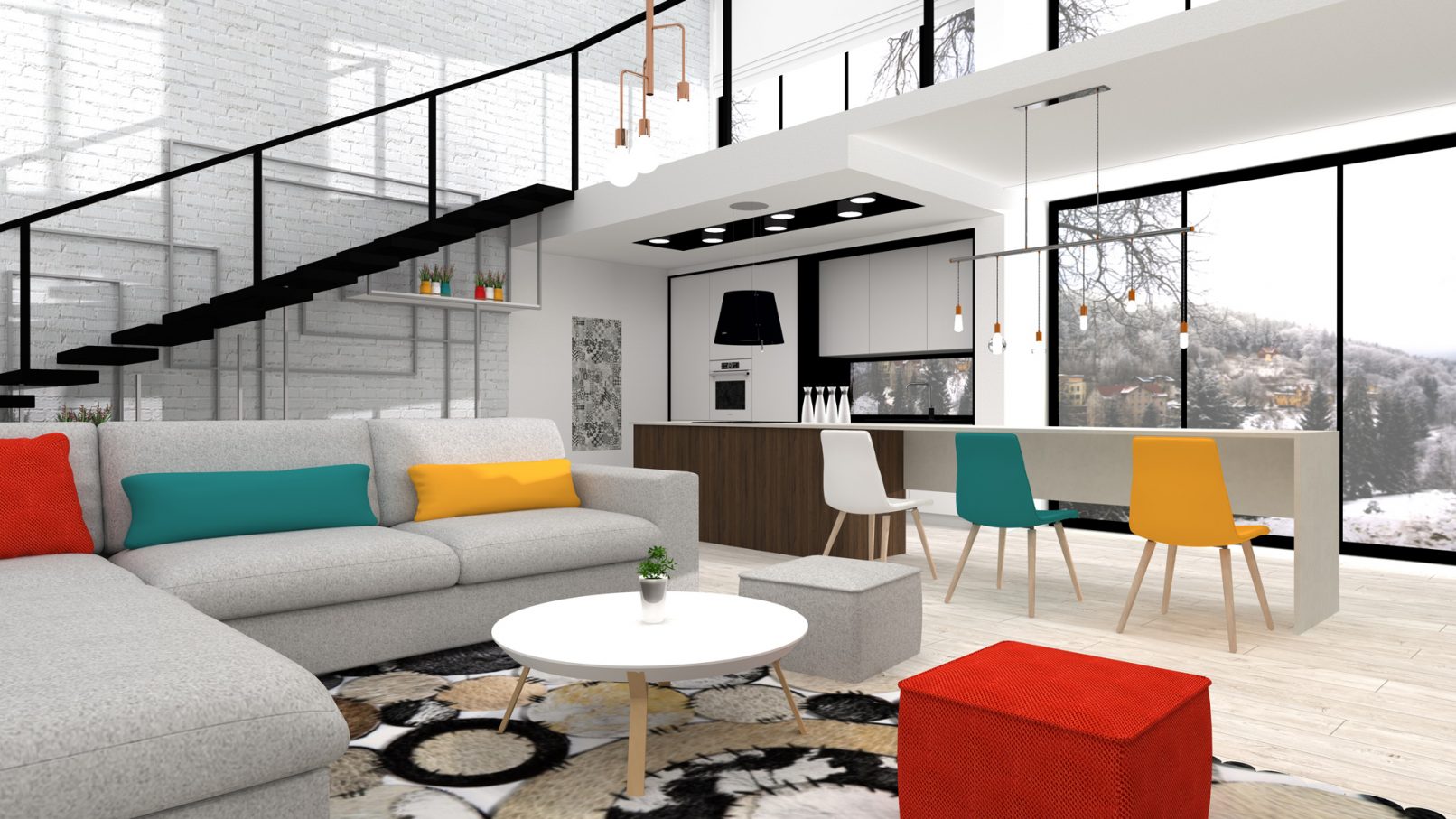 Uchwyca widoki, które stają się częścią wnętrza. W zależności od zmieniających się pór roku i kolorów za oknem, wnętrze zmienia swój charakter. Kontrast między bielą i czernią dopełniony kolorami. Który z nich to Twój ulubiony?